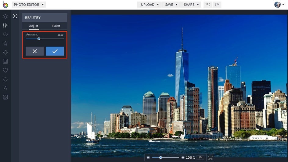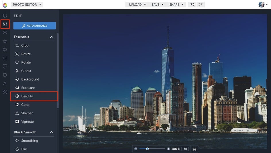 Found within the Edit tab within BeFunky’s Photo Editor on the left side of your interface, these are our favorite tools for editing your cityscape photos.