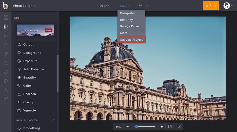 Upload any blurry or low-contrast image. The Clarity tool will instantly take effect, increasing the contrast in the image’s midtones and resulting in a higher level of definition. Use the Amount slider to adjust the intensity of the effect – you may find that even a low percentage helps achieve the desired clarity, or you may want to turn the dial all the way up.