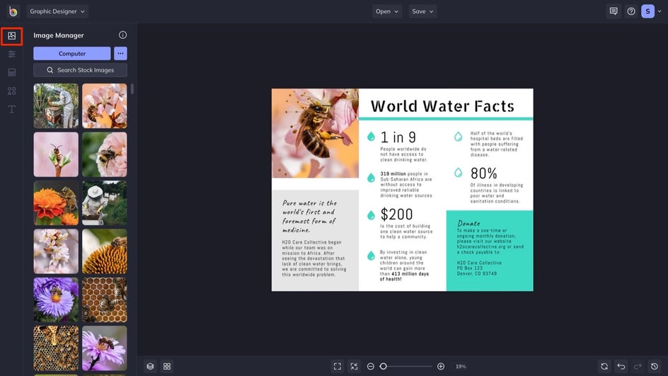 To get your images into BeFunky, start in the Image Manager. Here, you can upload files from your computer, drag and drop them into your Image Manager, or browse our massive Stock Image Library for more.