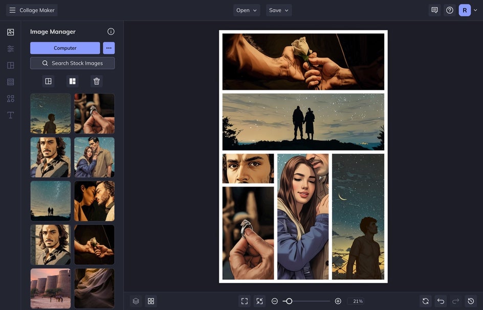 You may have already mapped out or created a visual storyboard for your comic, which we would recommend! This will make it easier to select the images you want for each collage cell and will make the process go a lot faster.