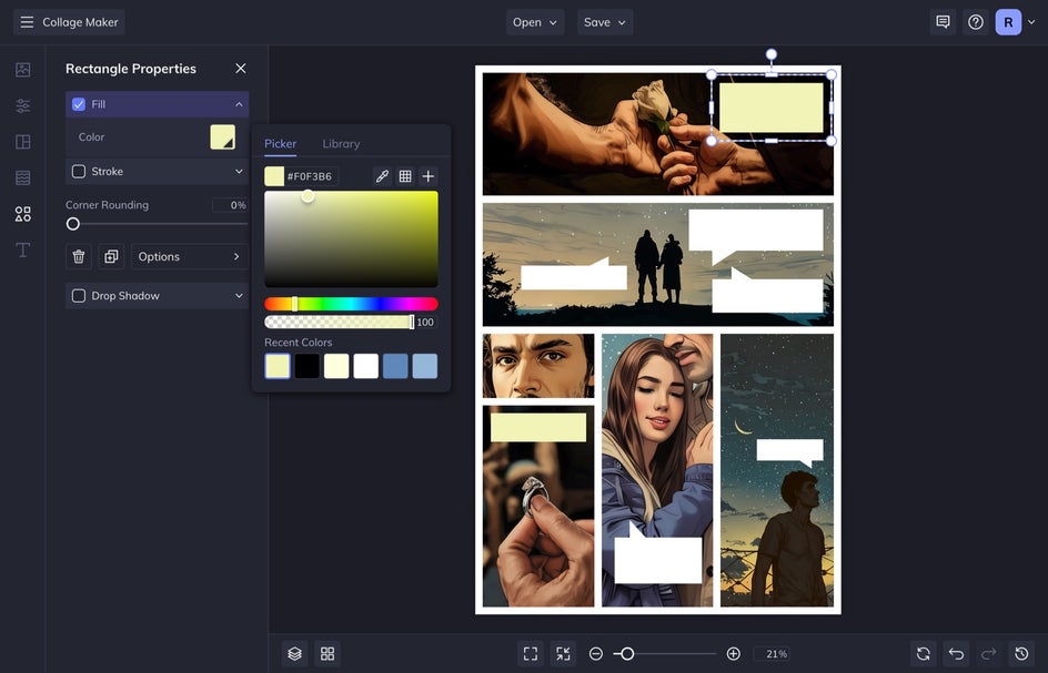 Rather than generating random cartoon pictures, our AI cartoon filters let you instantly transform your photos into cartoons. With tons of cartoon styles to choose from, you can create comic book pages in any traditional style with the click of a button. The best way to create a free online comic book is with BeFunky’s Collage Maker. These tools allow you to easily arrange panels, experiment with layouts, and bring your comic pages to life without the hassle of complex design programs.