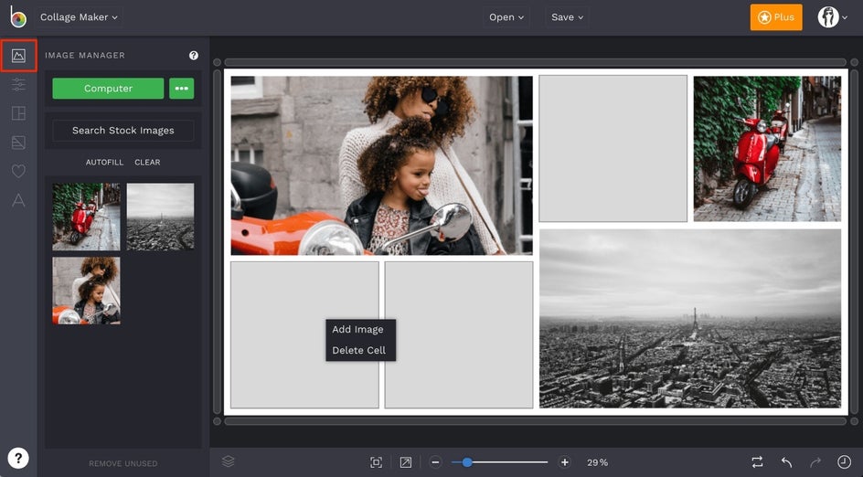 The Collage Maker is available right in your browser, so there’s no need to download additional software. And with one click, you can open any collage cell photo in the Photo Editor to apply touch ups, photo filters, and more. There’s no end to your creativity!