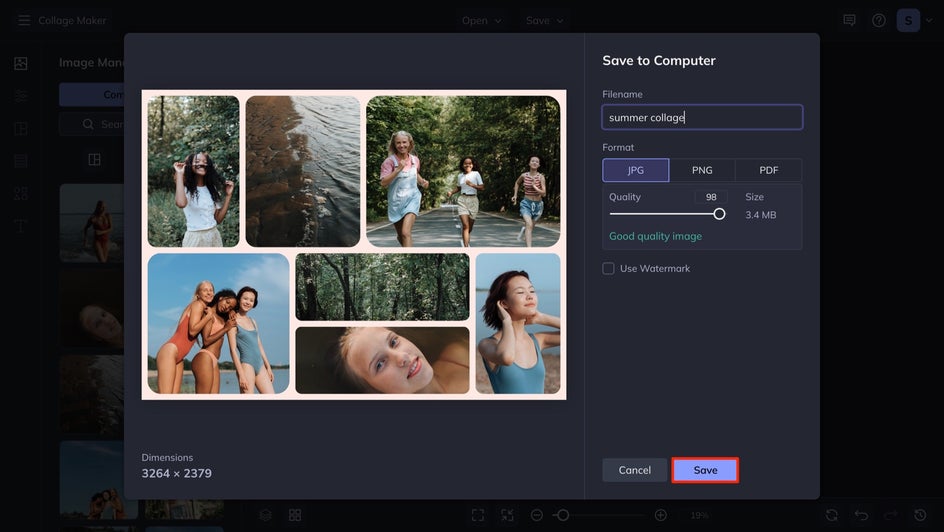 In addition, you can select the Save as Project option to save your work in an editable format, in case you want to continue editing in the future, or save it as a template for more creative collages.