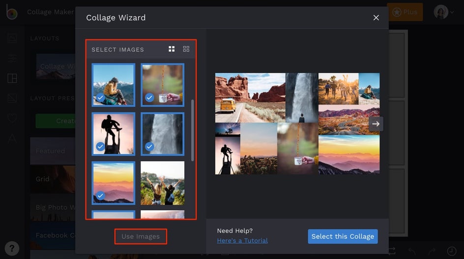 Once you’re ready for the Collage Wizard to generate your picture-perfect collage layouts, click Use Images.