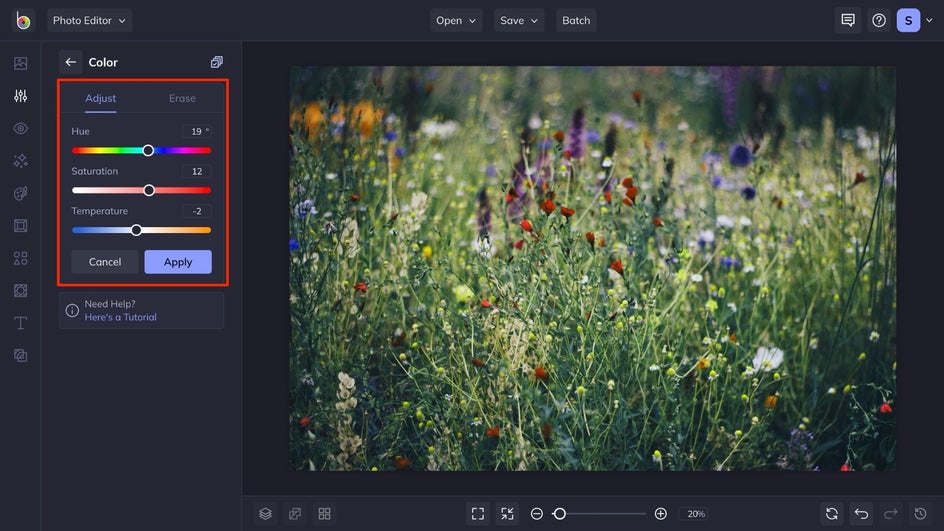Even though there is a lot that goes into editing image color, it does not have to be an intimidating process! With this background info in mind, we’ll show you how to adjust each of these sliders in BeFunky’s Color tool so you can see them in action.
