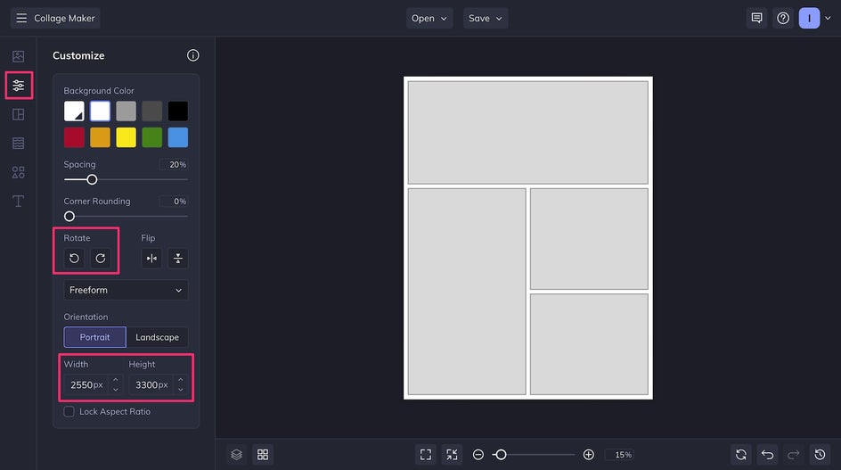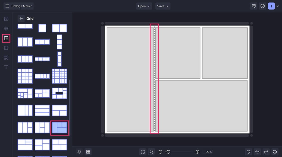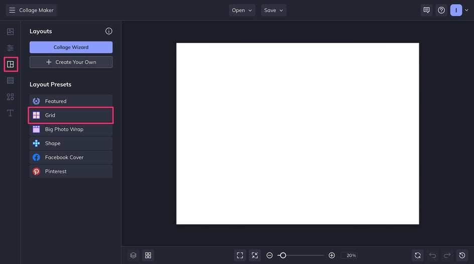 Your first step once you’re in the Collage Maker is to pick a layout that makes sense for your comic. Click the Layouts tab and then choose Grid to view premade templates.