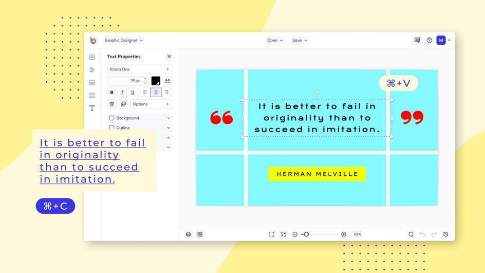 We've made copying and pasting text even easier. Simply paste your text onto your project and we'll add it as a new text layer for you! And if you have other text layers in your project, text pasted in from an external source will take on the same attributes as the last text layer you edited in BeFunky. Keep your design cohesive without worrying about matching all the individual settings.