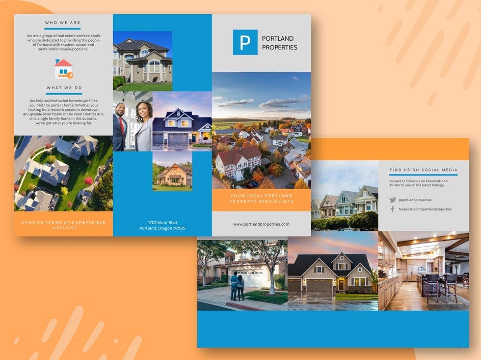 Brochures can be used at open houses, mailed to potential buyers, left in info boxes, or handed out at real estate events. With the right content and design, they act as your 24/7 salesperson – always ready to make a great first impression.