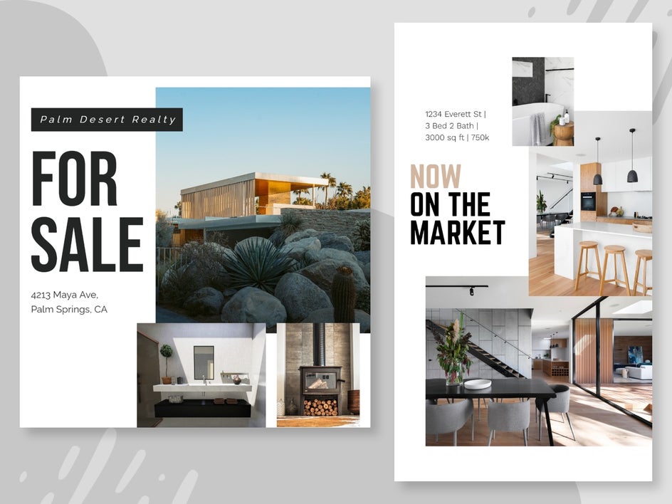 Reach potential buyers online by creating eye-catching real estate graphics for social media. Whether you’re posting on Instagram, Facebook, or Pinterest, our templates are perfectly sized and easy to customize for just-listed posts, client testimonials, market updates, and more.