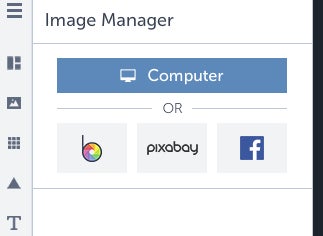 Click on the Image Manager to add and edit personal and brand-related photos.  If you want photos but aren’t sure what kind to use, the Toolset gives you access to Pixabay’s index of thousands of royalty­-free photos.  I don’t think this photo needs much in the way of editing, so I’ll move on to changing up my text.