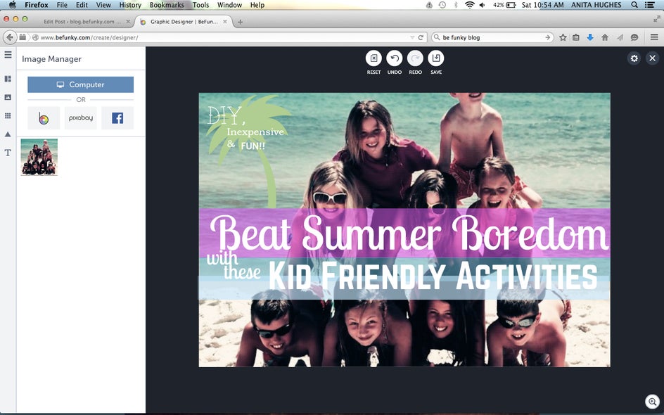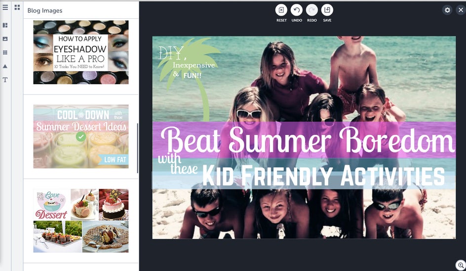 Any blogger's goal is to grab the attention of readers and web-surfers. Enter the new BeFunky Designer. It's your new secret weapon for creating eye-catching blog images. I wrote about creating mouth-watering pins in my last post, but the Designer can do so much more than just food images. I used my Beat Summer Boredom post as a jumping off point to create an awesome blog post image: