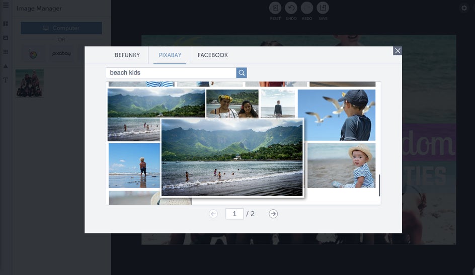 Also, with the BeFunky Designer you don't have to have your own photos. (PS: This is not my photo). BeFunky has teamed up with Pixabay, which has gazillions of gorgeous photos you can use to your heart's delight. You can find it under Image Manager, where you will also have the option to upload images from Facebook, BeFunky, or your Computer.