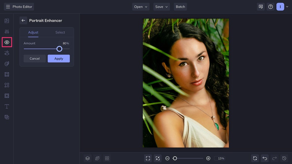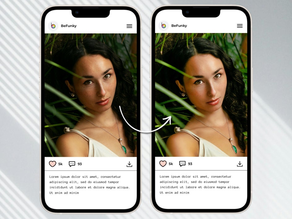 If you feature people in your Instagram posts – whether it’s models, staff, or yourself – presentation matters. Our AI Portrait Enhancer smooths texture, balances contrast, and whitens eyes and teeth in just one click, making your subjects look their best without looking overly filtered.