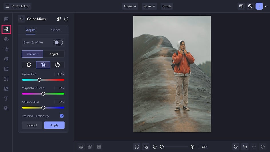 Color consistency is one of the simplest ways to make your Instagram feed look professional. Whether you’re building a bold, bright identity or something more muted and minimal, the Color Mixer lets you fine-tune hues, saturation, tones, and contrast for a cohesive look across every post.