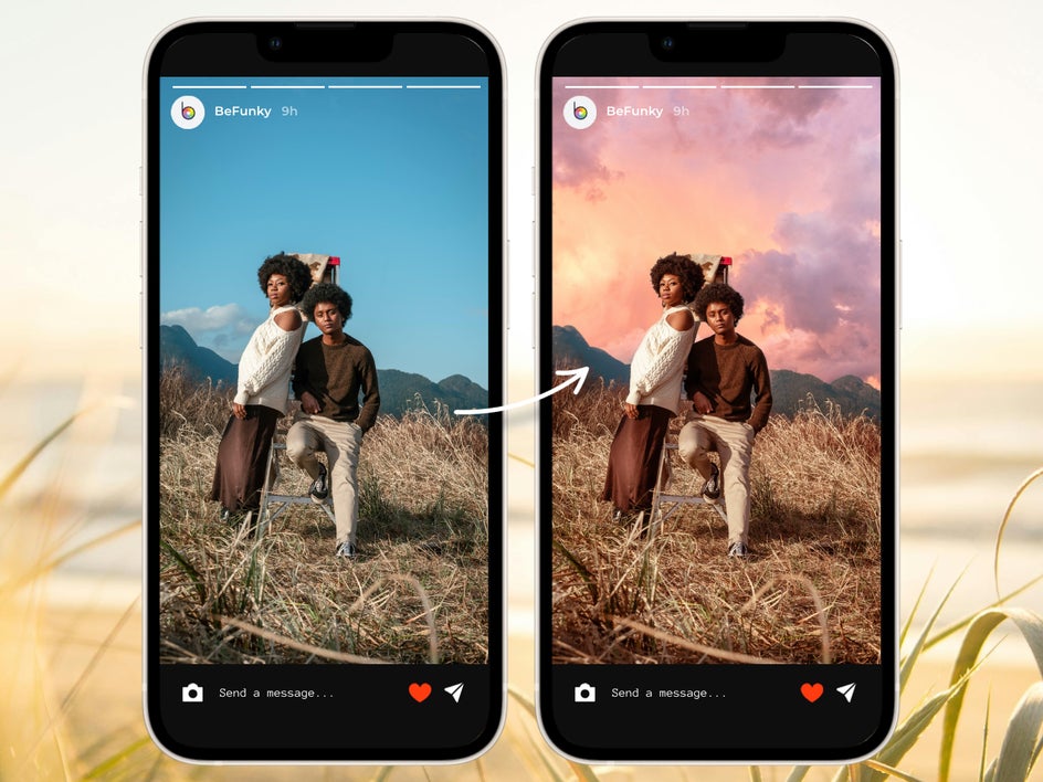 Outdoor shots are beautiful, but they’re also unpredictable. Cloudy days, overexposure, or mismatched lighting can throw off your entire Instagram grid. Luckily, our Sky Replacer tool lets you instantly swap out a dull sky with a vibrant, on-brand alternative.