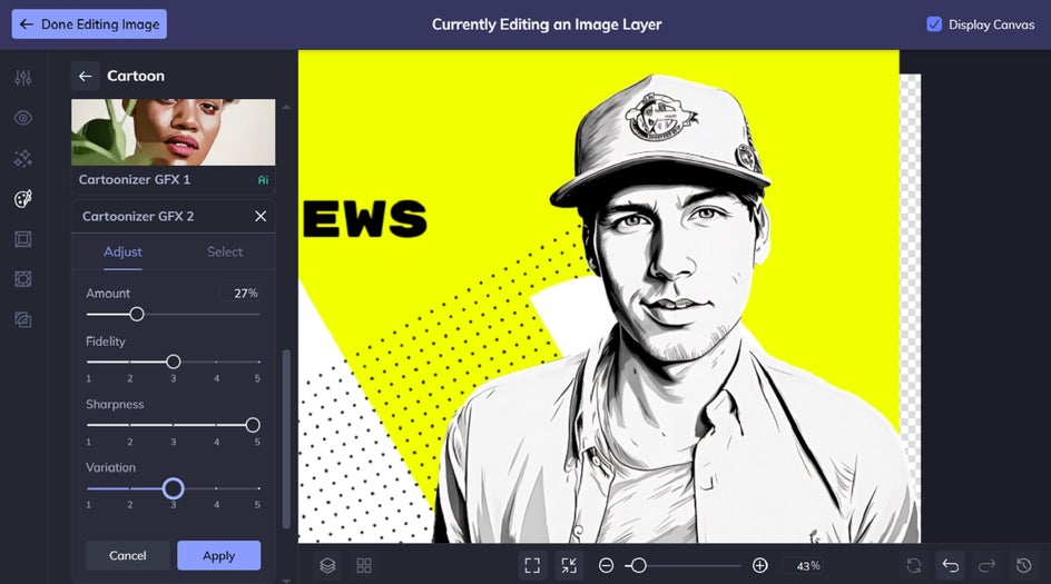 Looking for a more stylized and modern vibe? Our Cartoonizer™ effects transform ordinary photos into eye-catching, digitally illustrated artwork. These effects are perfect for banners with a tech-forward, artsy, or youth-oriented aesthetic.