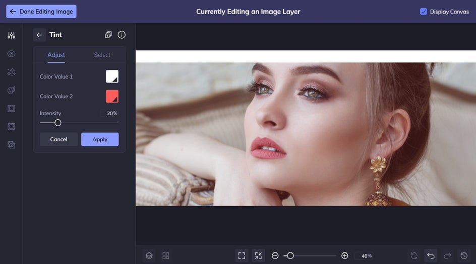 Having a consistent color palette across your platforms reinforces brand recognition and professionalism. The Tint tool lets you color-grade banner images so they match your overall aesthetic.