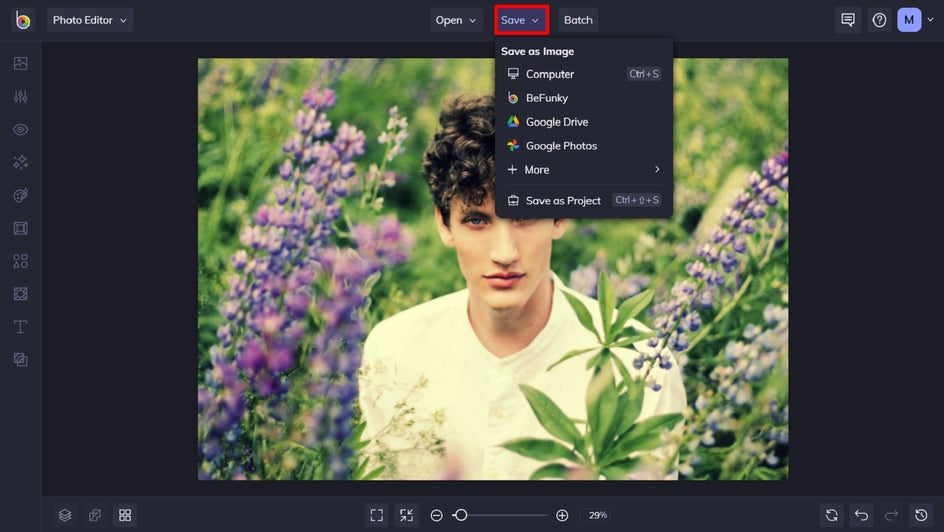 Click Open, then select the destination you wish to open your photo from, including your computer, BeFunky account, Google Drive, Google Photos, and more.