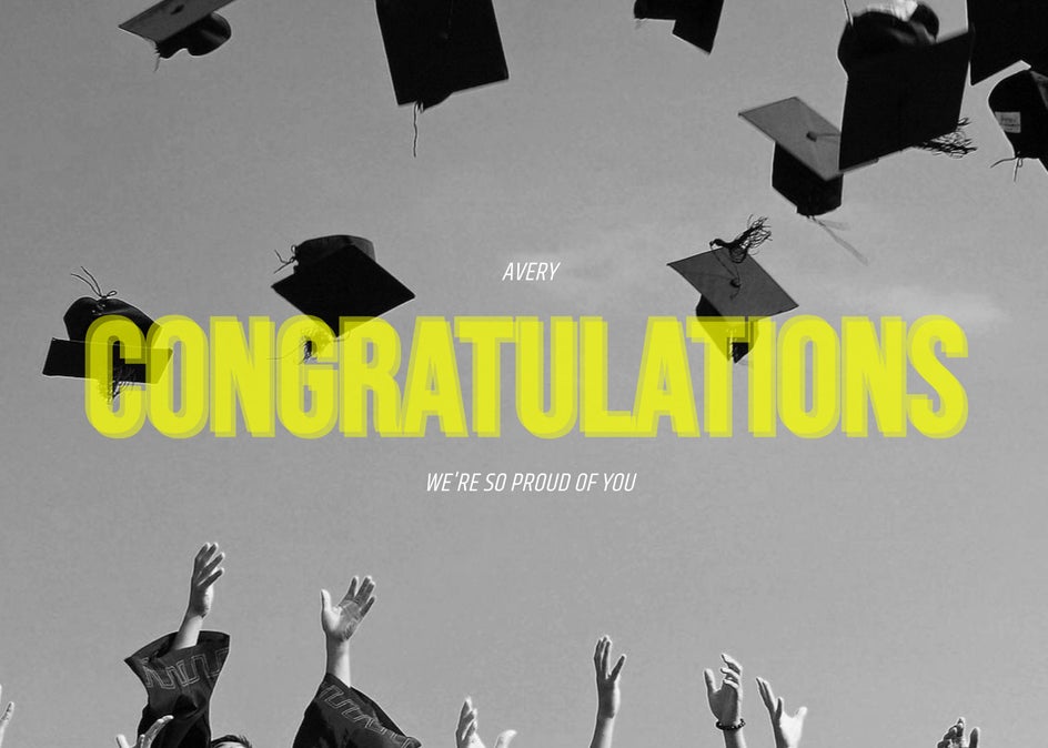 When I am trying to figure out what to write, I look on the internet for some inspiration! Luckily, we have that inspiration right here for you. Once you choose your congratulatory phrase, we will show you how to create your own custom graduation greeting card using BeFunky’s Graphic Designer. This is your one-stop shop for your graduation card needs.