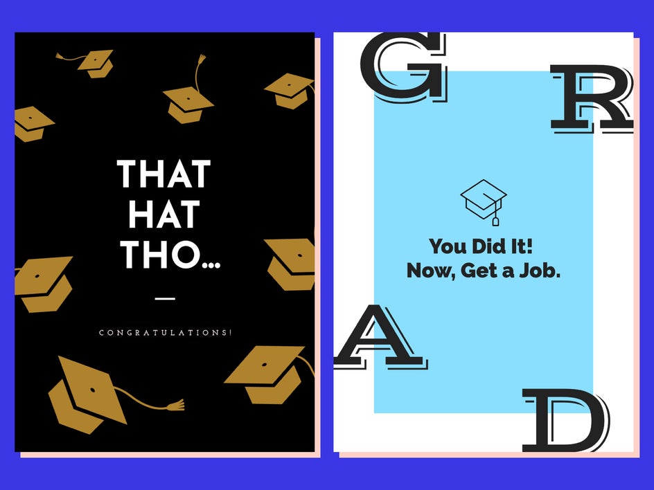 Sometimes, knowing what to write for a custom card is the hardest part. If you are trying to figure out what kind of card to write, take a look at the inspiration below. When you are ready to get started, check out BeFunky’s Graduation Card templates.