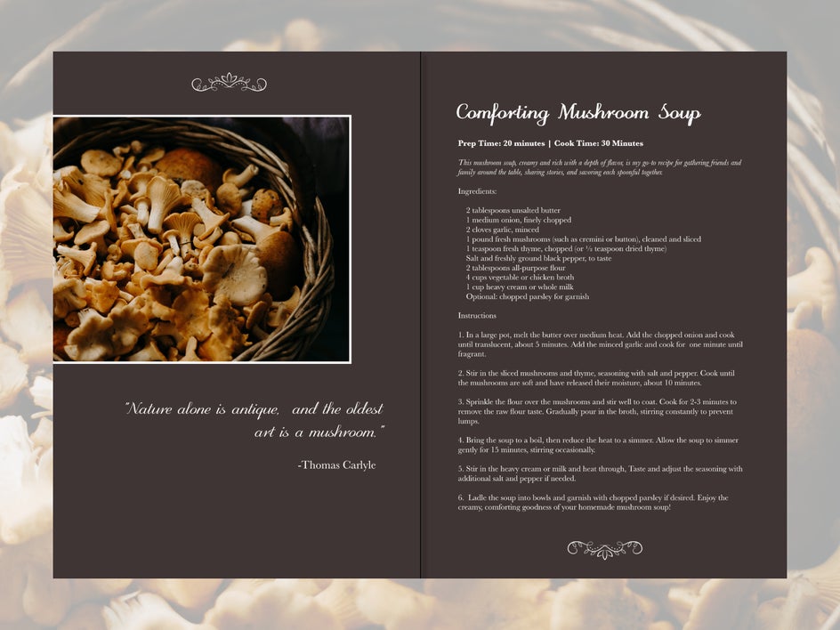 Just include the title of your dish, your written recipe, and optionally, a picture of your finished dish. You can also add some graphics from the Graphic Designer to add a unique visual touch.