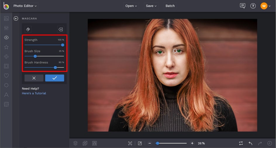 The Blush tool allows you to add a flush of color to your subject’s cheeks, imbuing the portrait with more warmth and depth. A soft brush works well here to make the effect look natural - and don’t forget, you can always change the intensity of the color using the Strength slider.