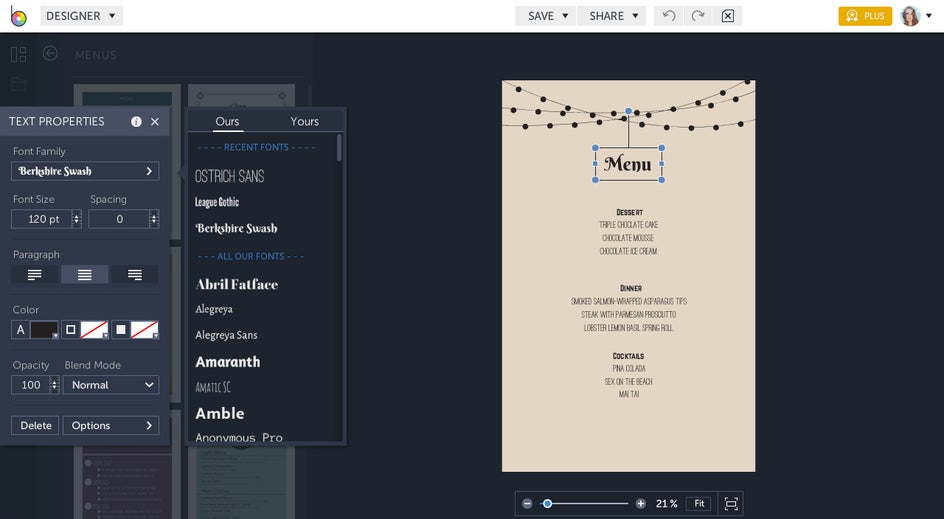Is there anything more impressive at a dinner party than a printed menu for every guest? A menu adds a level of professionalism and elegance to your party, and will get everyone excited for an evening of amazing food. BeFunky has dozens of premade menu templates for you to choose from, including some that are completely free. The layouts are professionally designed by real graphic designers, so the only work you have to do is personalize them for your party!