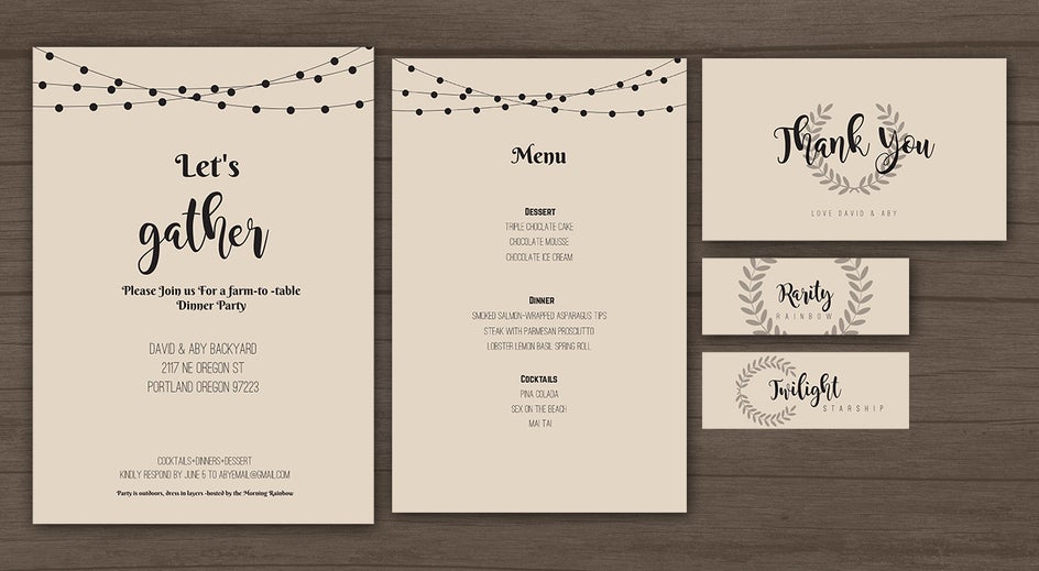 Pro Tip: Use similar fonts, colors, and graphics throughout your dinner party printables for consistency.