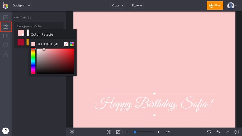 Next, in the Customize tab, adjust the colors or background to match the recipient’s aesthetic – whether it’s colorful and festive or sleek and minimal. (Check out this article for tips on creating a cohesive color palette for your card!)