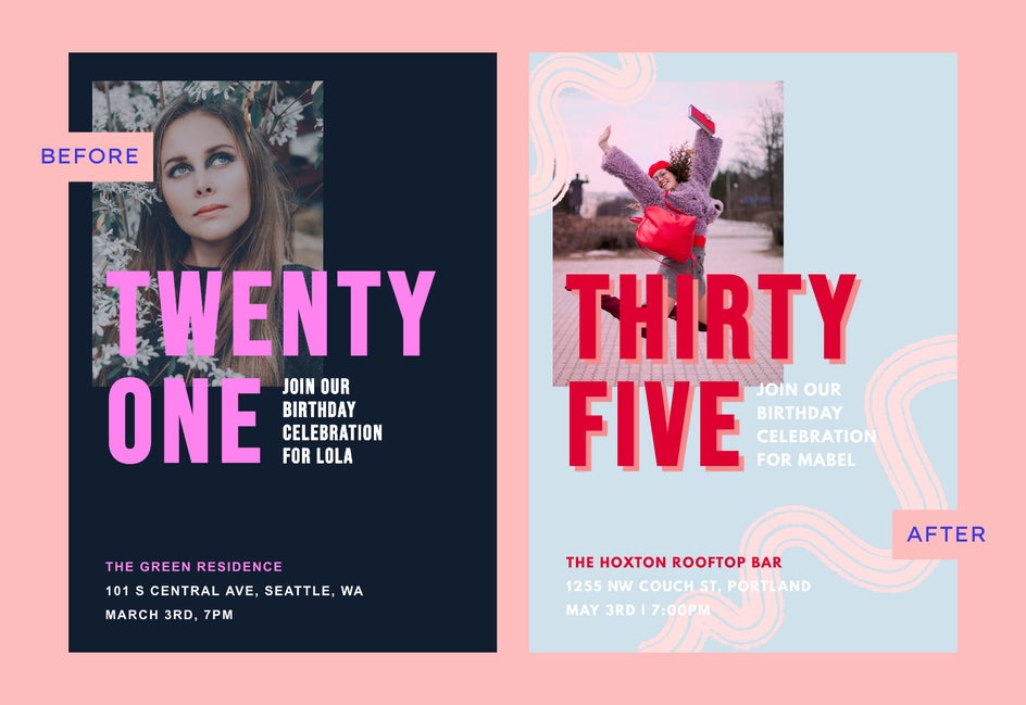 Can’t find a suitable photo for your birthday party invitation? No worries. The Invitation Maker offers tons of stunning graphics-based templates - just tweak the colors and text and you’re ready to go! The process might be quick, but the results are iconic.