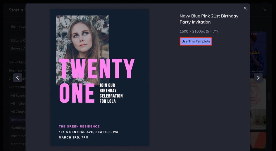 Simply open up the Birthday Invitation Maker and choose your favorite template.