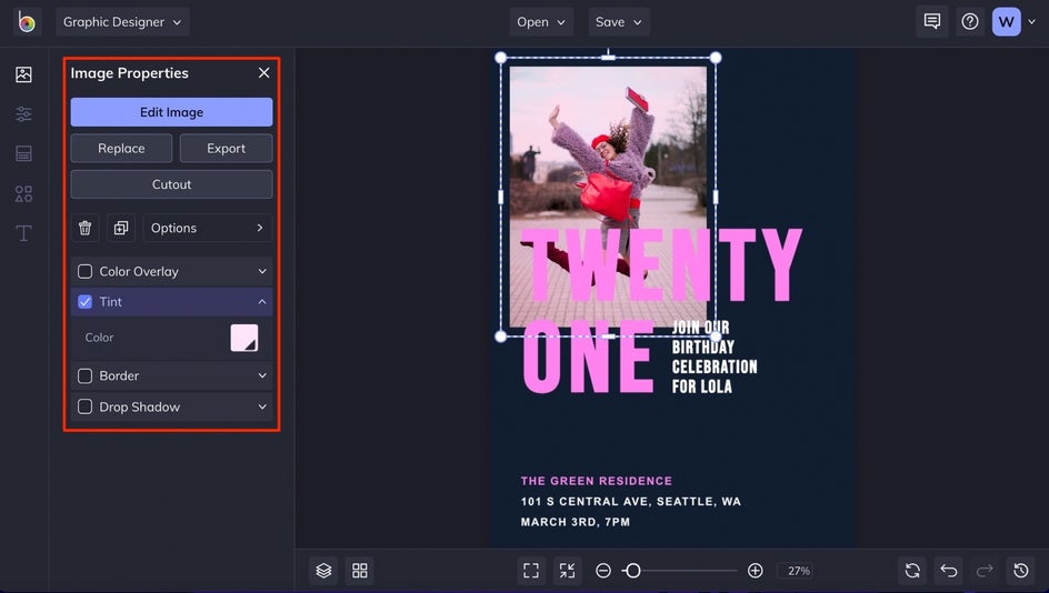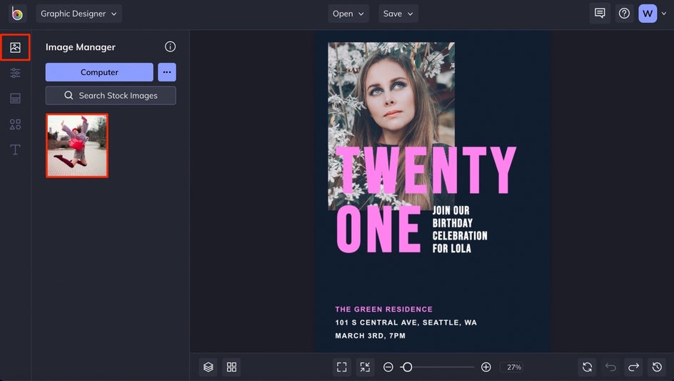 One great way to commemorate the birthday celebrant is with a template that features a single large photo. This is true whether you’re planning your own birthday party or throwing one for someone else! Try out Artsy effects or the Background Remover to add a unique twist to a simple portrait.