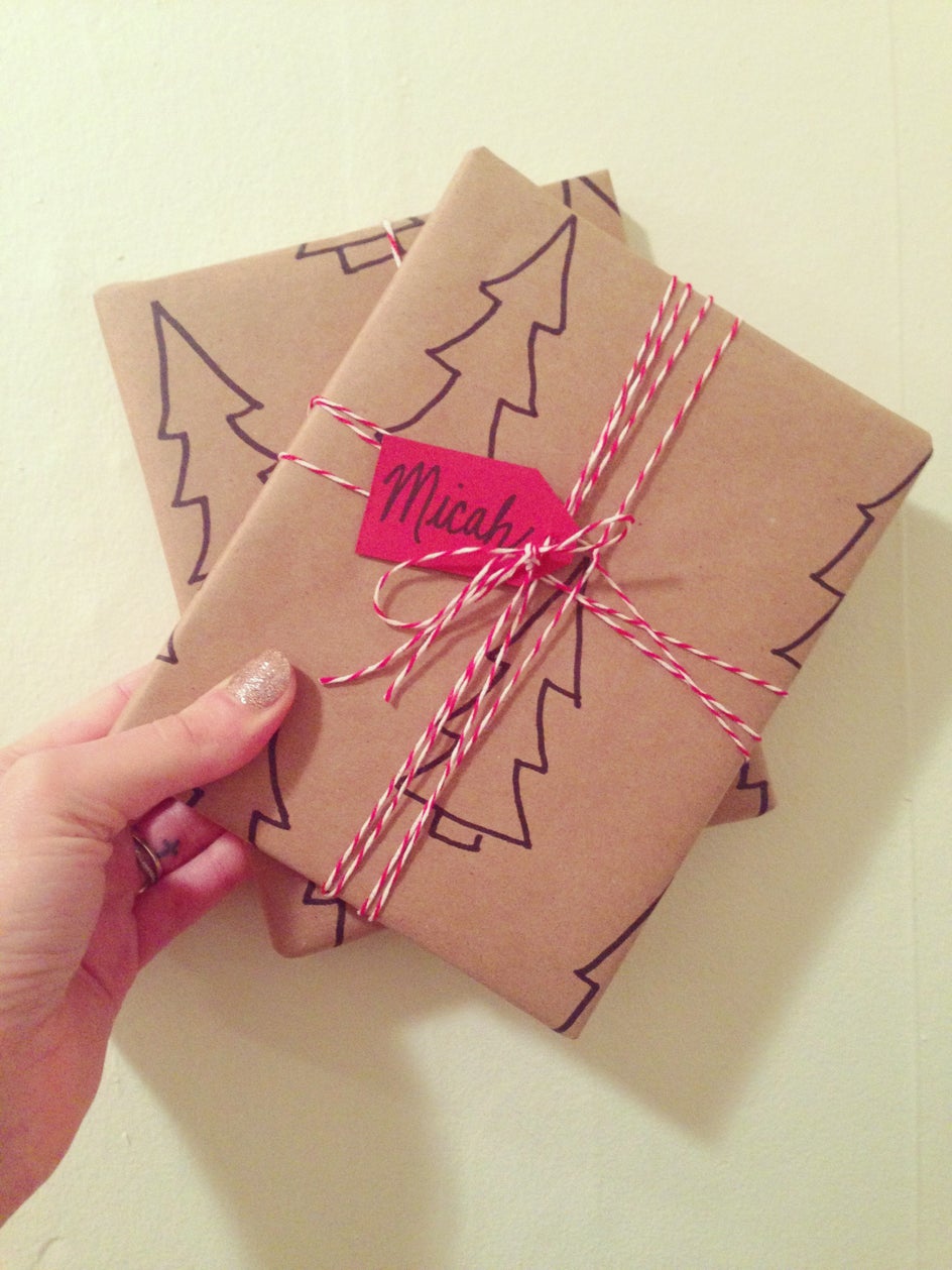 Take a Sharpie or white out pen and draw some Christmas trees on the shipping paper. They don’t have to be perfect, I just freehanded them and tried to keep them evenly-spaced.