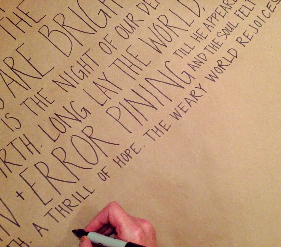 Write out the lyrics to your favorite Christmas song. I wrote the lyrics to Oh Holy Night with each line in different sized capital font.