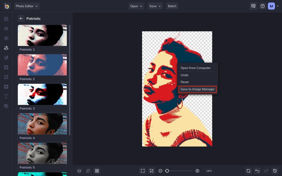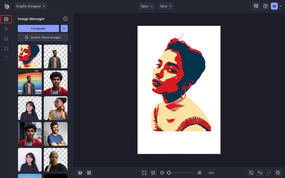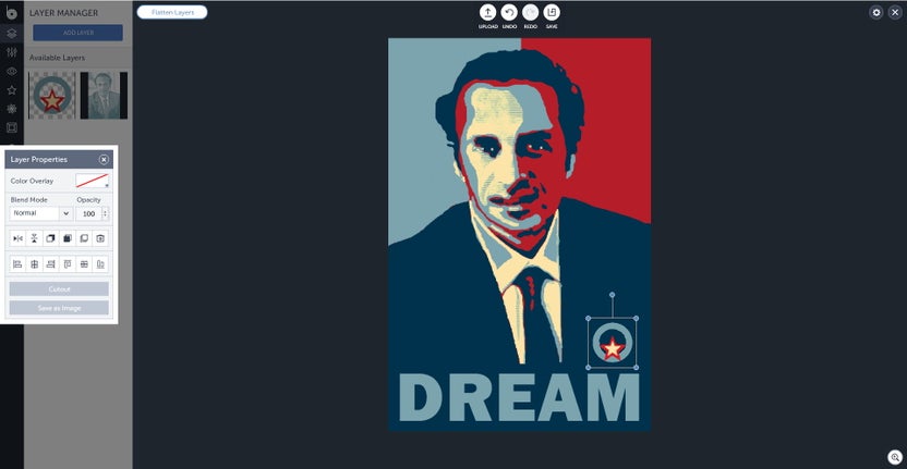 This next part requires you to right-click and save your image to the Image Manager. That's because we're going to assemble the rest of our Hope poster in the Graphic Designer.