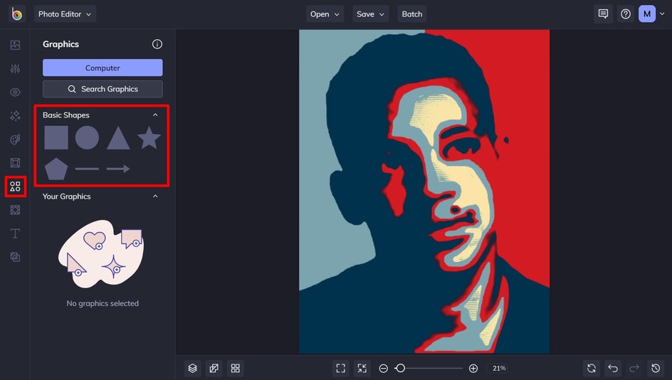 If you’ve ever wanted to recreate your very own version of this design using a portrait of your choosing, you’re in luck. BeFunky’s Photo Editor has the perfect Photo Effects and tools to get the job done – all within a few clicks! We’ll show you how.