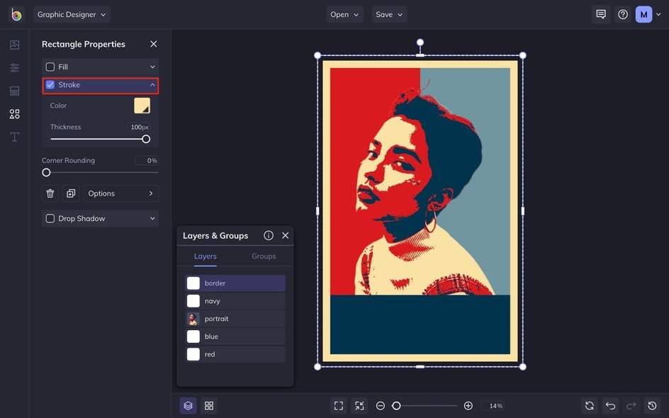 The finishing touch before we head to the text section of this tutorial is to add a border that’s identical to the original design. Add a fourth rectangle, remove the Fill, and check Stroke.