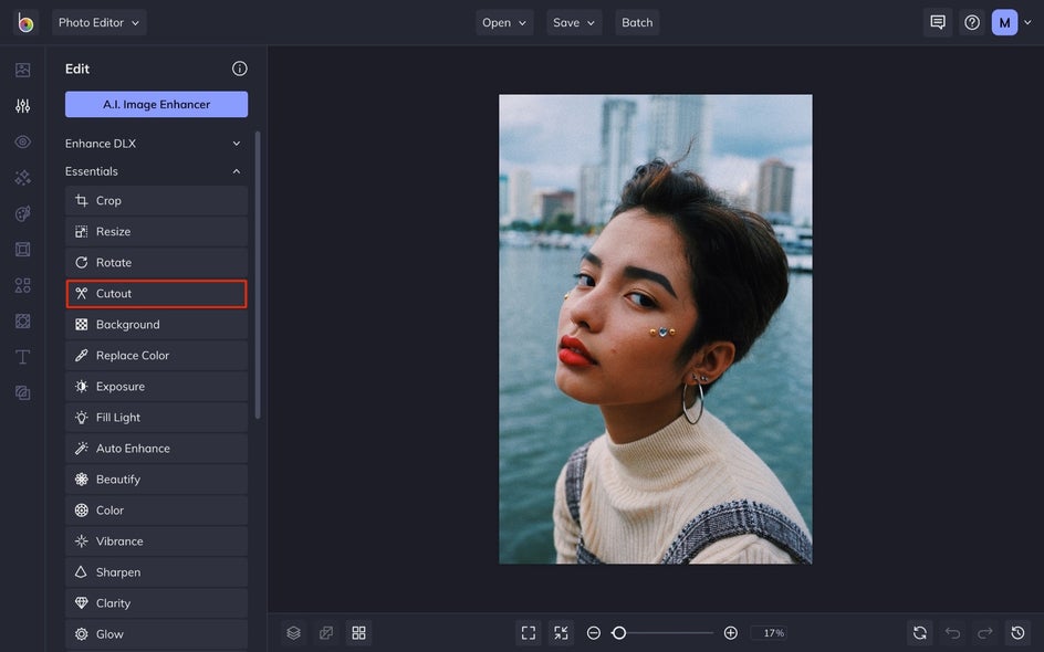 Head to the Cutout tool, found under the Edit tab, to cut out your image from the background.