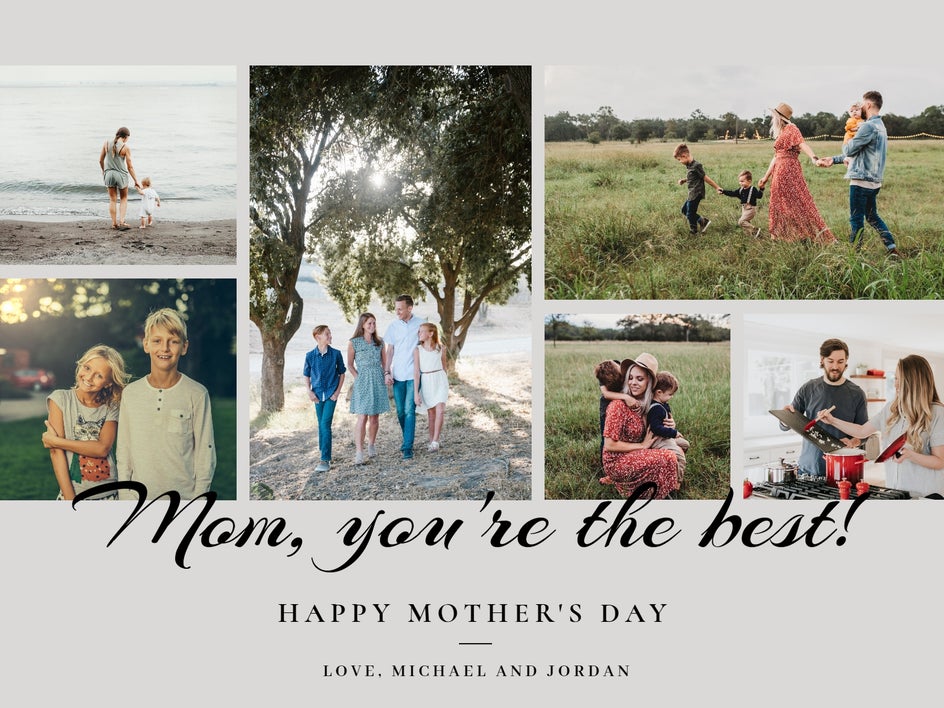 Select a collage card template, then swap out the existing images to personalize it for Mom!