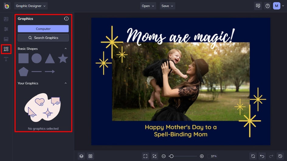 Alternatively, you can select any of the Basic Shapes featured within the Graphics tab and drag them onto your card.
