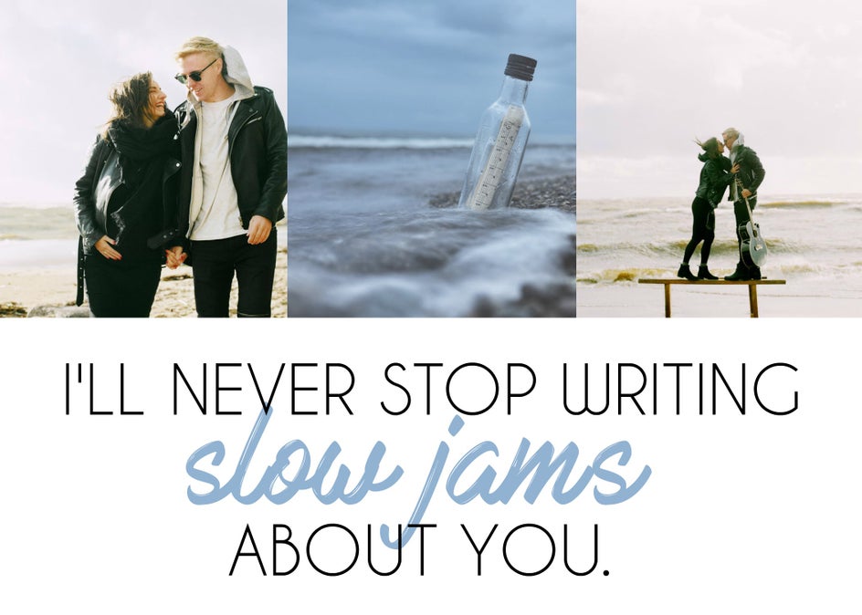 If you’re all about simplicity, then the single photo card layout may suit you (and your boo) best. Not only do they allow your favorite couple photo to take pride and center, but it also lets you get creative with your chosen image, overlaying it with meaningful text and eye-catching graphics to produce your very own work of art.