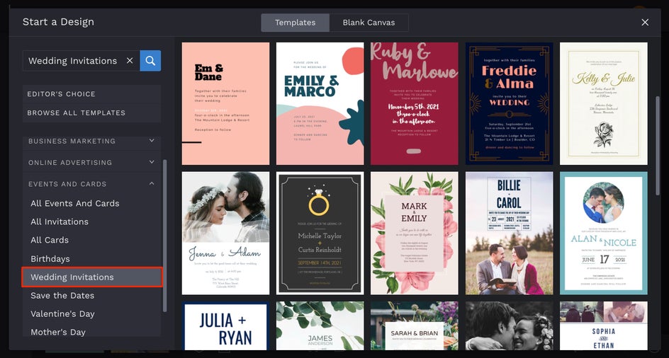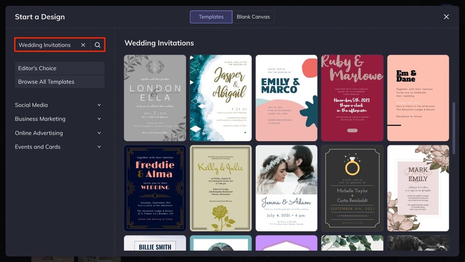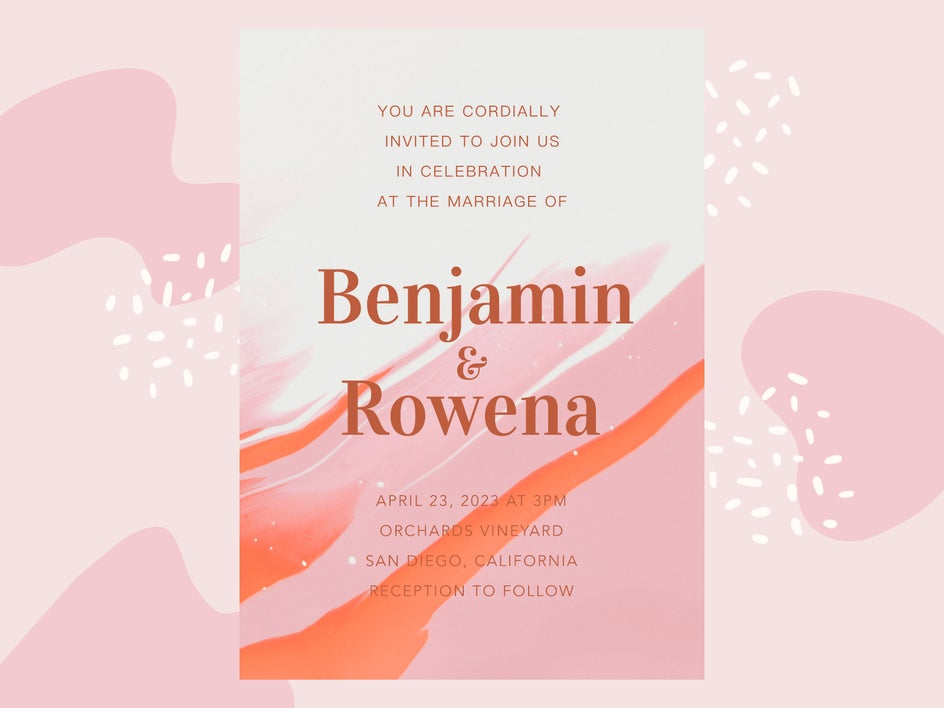 Head to the Wedding Invitation template category and browse through the collection of modern, minimal, vintage, and boho designs. Whether you’re planning a black-tie affair or a barefoot beach ceremony, there’s something here that will feel just right.