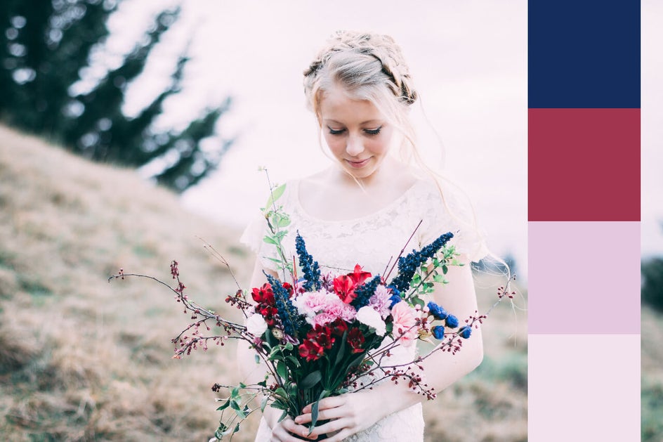 Keep things sleek and sophisticated with a minimalist, all-one-color palette. Use different shades and tones of the same hue, like blush, slate, or olive, for subtle contrast, then let negative space and a clean font do the talking.