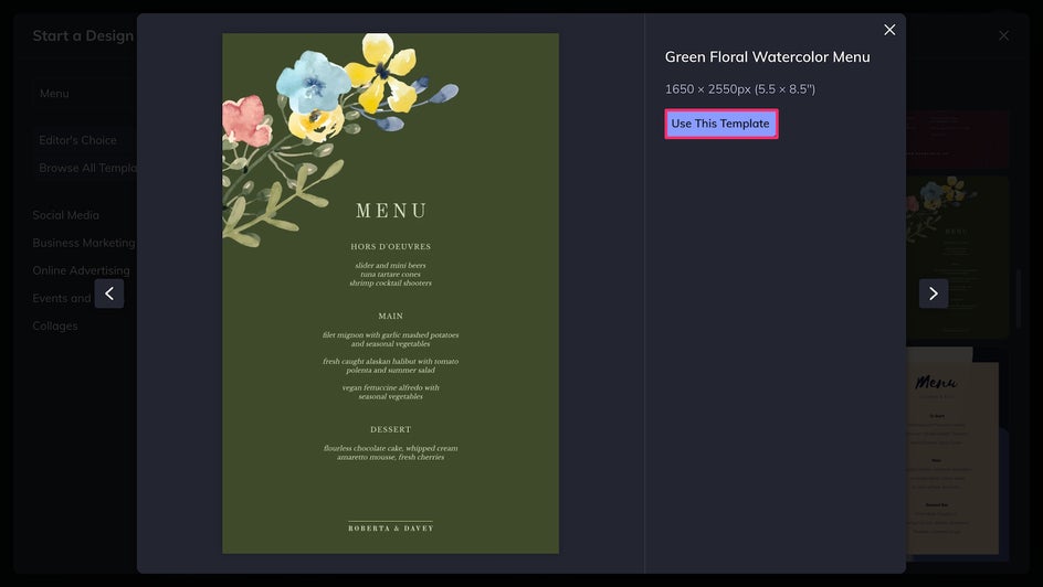 In this tutorial, we’ll show you how to pick the template that’s right for you, and exactly how you can personalize your wedding menu card to your liking.