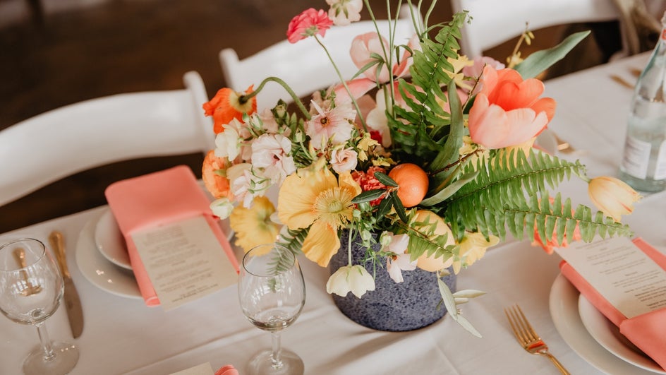 In this case, we have a traditional springtime wedding that focuses on florals and bright, natural colors. The food service will be three courses: starters, entrées, and dessert. So we’re on the lookout for a three- or four-course menu that we can customize with our own food options.