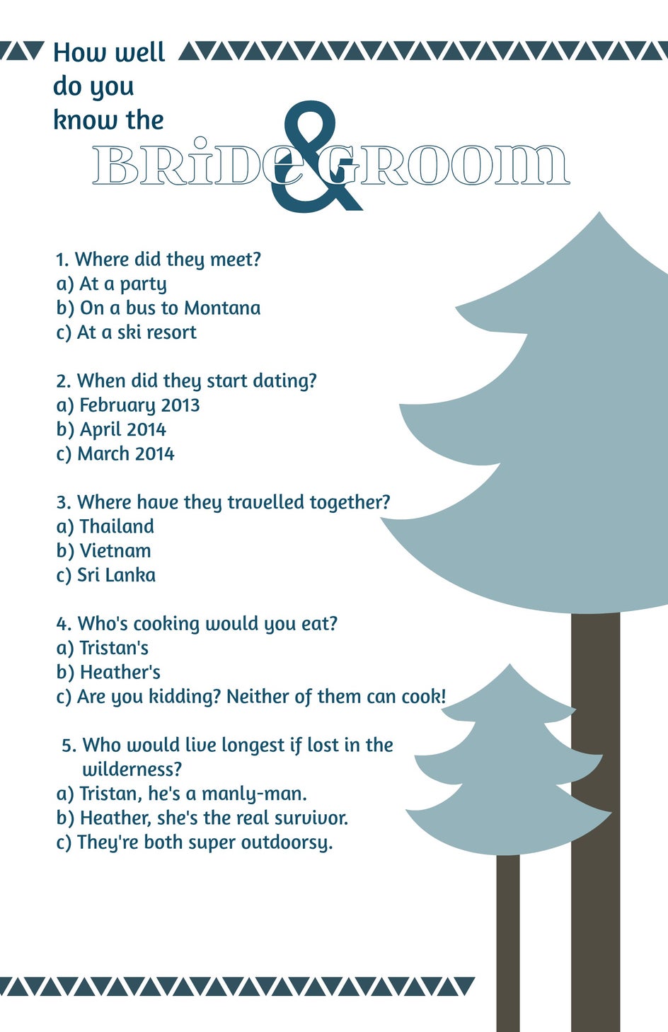Here’s how I made a little bride and groom trivia sheet for my brother and his fiancee.