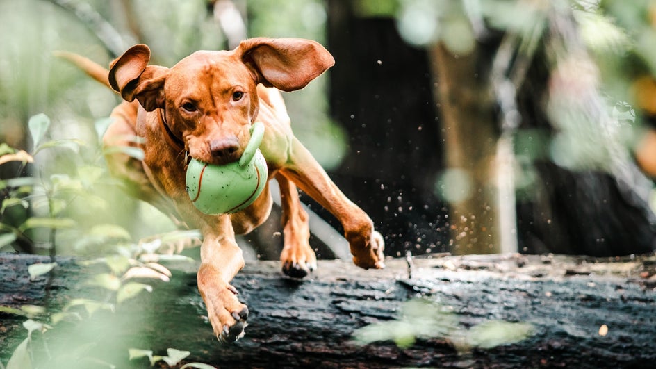 Focus on your composition to create some powerful shots. Consider the rule of thirds, which involves placing your subject off to the side of your composition for a more dynamic image. Or, place your subject dead center for a bold image where they’re the main focal point. Pay attention to your angles as well. Get down low, on your dog’s level, to include some foreground. Introducing some foreground, like grass, leaves, or stones, can help you to set the stage for your composition.
