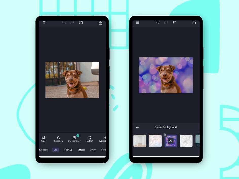 Another cool feature of BeFunky is the Background Remover tool. If you are really hoping to put emphasis on your subject and perhaps trying to draw attention solely to their eyes, then you might consider removing the background and applying a color to help it pop, or using a fun background to match your dogs' energy.