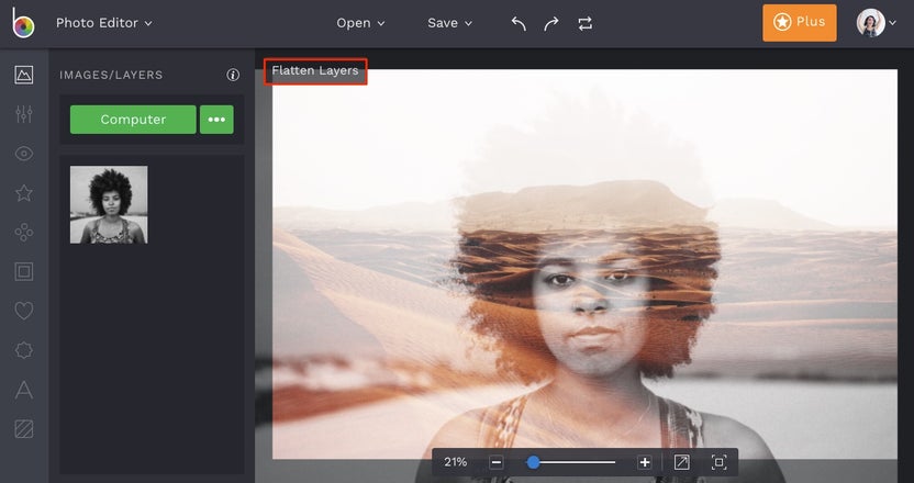 From elevating a portrait to a unique work of art, or emphasizing a cool landscape shot, you are able to create your own double exposure images in minutes. With the help of the Photo Editor, you can create an original double exposure with just a few clicks.