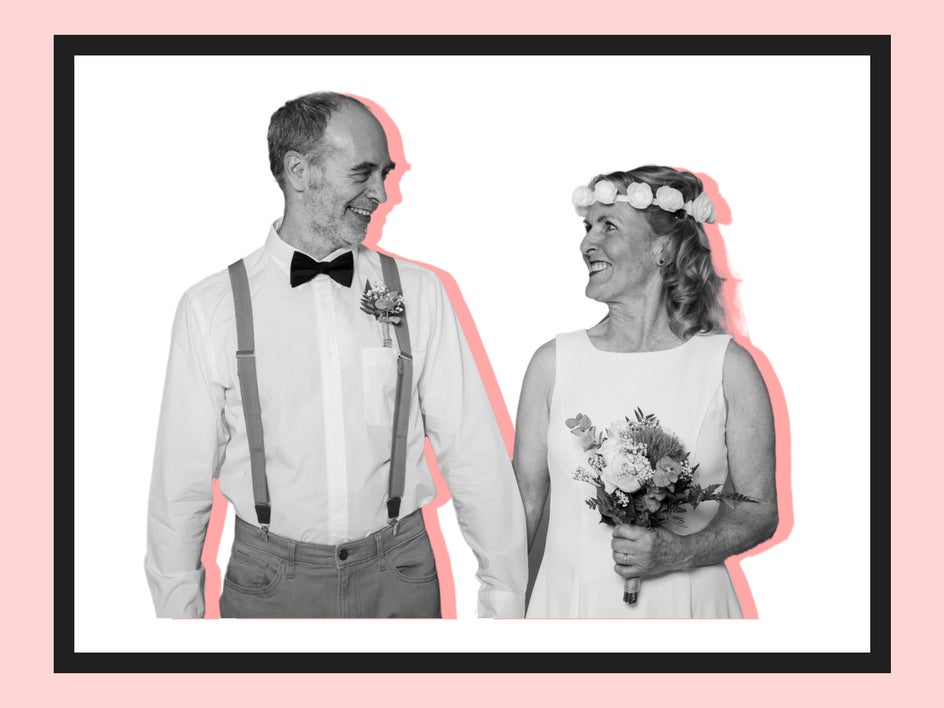 If you’re looking for an artistic way to display your favorite wedding photo, consider this style. We love how the cutout effect places the couple front and center, while the pop of color from the drop shadow further catches our attention. This also makes for a great DIY gift idea that you can print and frame for the happy couple.
